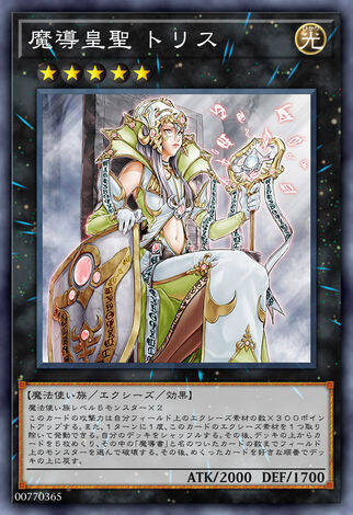 这张卡的攻击力上升自己场上的超量素材数量×300的数值。此外,1回合1次,把这张卡1个超量素材取除才能发动。自己卡组洗切。那之后,从卡组上面把5张卡翻开,选最多有那之中的名字带有「魔导书」的卡数量的场上的怪兽破坏。那之后,翻开的卡用喜欢的顺序回到卡组上面。