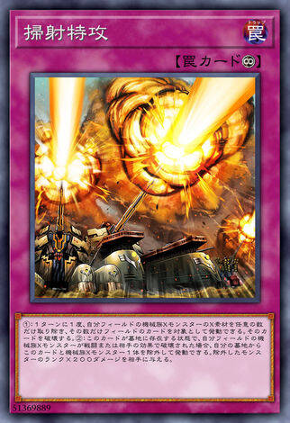 效果:①:1回合1次,把自己场上的机械族超量怪兽的超量素材任意数量取除,以那个数量的场上的卡为对象才能发动。那些卡破坏。