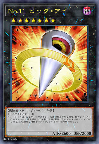 效果:把自己场上1个超量素材取除才能发动。选择对方场上表侧表示存在的1只怪兽破坏。