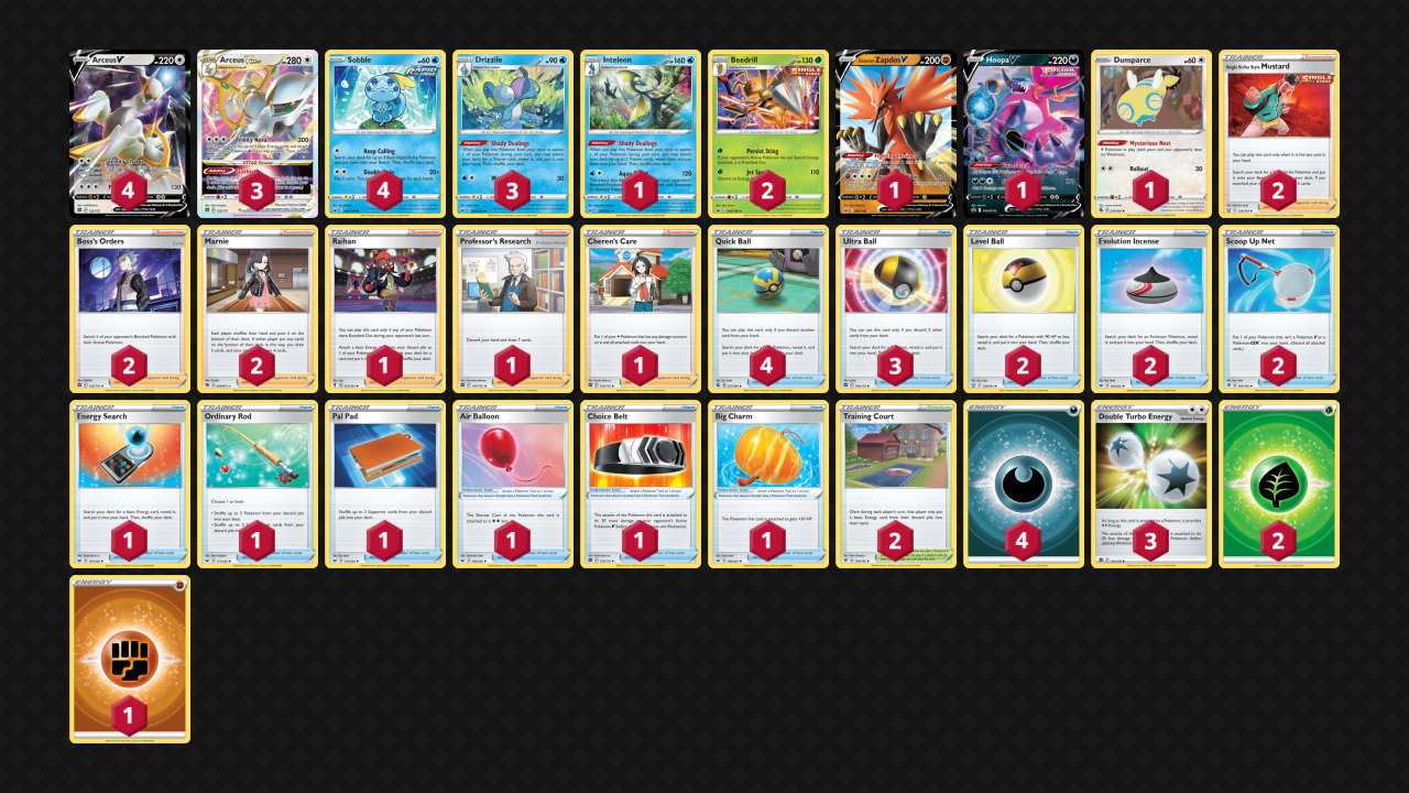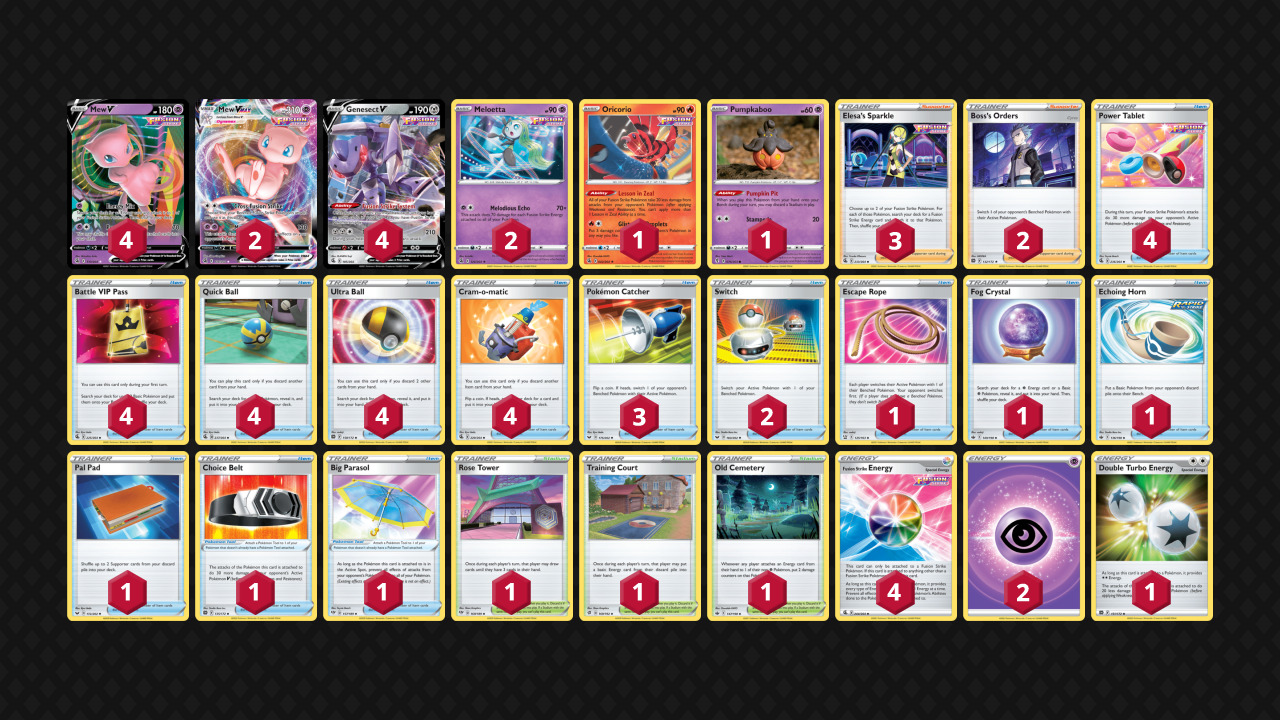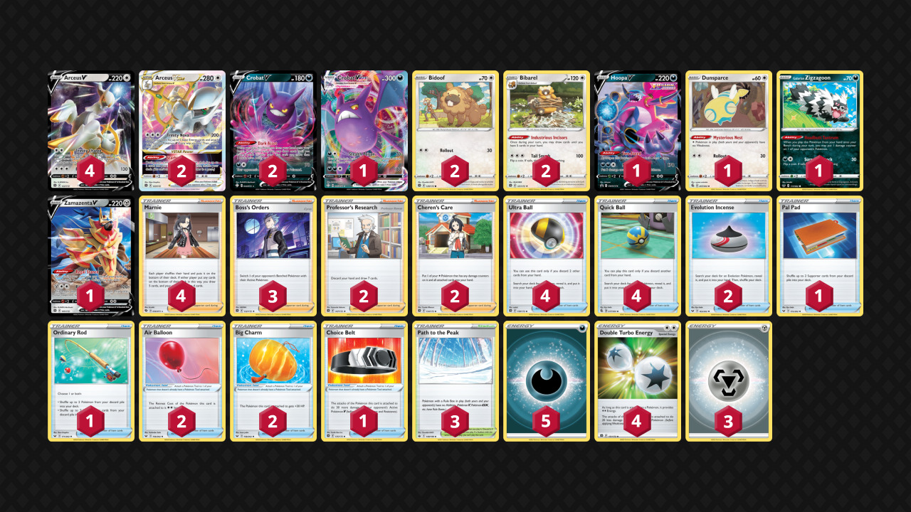 冠军卡组没有采用最近一直流行的千面轴的主流构筑,而是选择了大牙狸这种抓牌而非精确检索的辅助卡,原因之一可能是最近流行的各种携带雷伊布记忆胶囊用来针对千面轴的卡组剧增,选择用大牙狸轴虽然收益没有千面轴高,但保证起码不会被压制到无法动弹。这套卡组也是没有明显的内战对策,例如之前流行的闪电鸟,因为最近土龙弟弟的投入率明显提高,闪电鸟不一定会发挥出效果,选择投入了2黑莲也是在内战中有了更多可以拉扯空间的卡,增加了卡组的厚度,面对0黑莲或者1黑莲1朋友手册的宙斯内战时,2黑莲配合朋友手册最多可以使用4次。对应梦幻上,卡组里拥有叉字蝠vmax和胡帕v,后者也能对付一下之前流行过的连击熊。