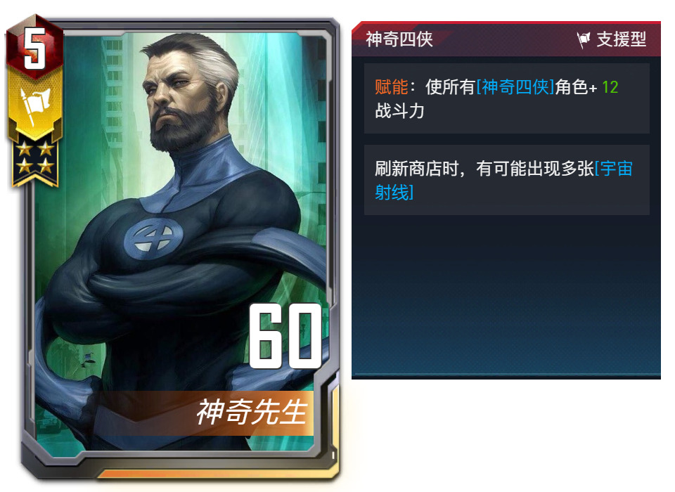 全新词条:神奇四侠——与这个友爱的一家子一起使用宇宙射线所带来的强大力量来击败敌人