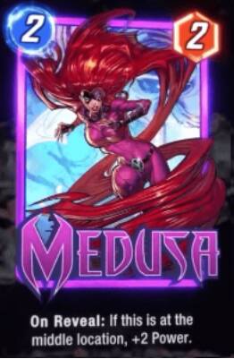 美杜莎:2费4力,放中间。通常2费美杜莎或星爵选一个放中间,其余的铁心白虎奥丁通常也会放在中间一起。
