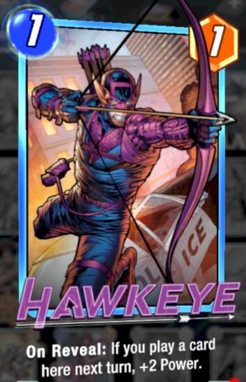 鹰眼:1费3力,但不太好用,因为通常2费的美杜莎或星爵都是放中间,而鹰眼不适合放中间。