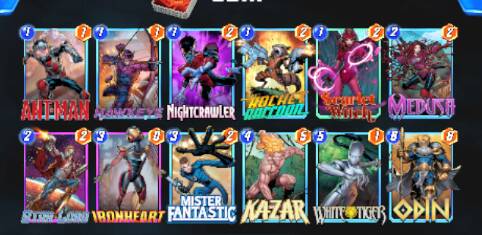 奥丁:卡组核心,本身亏6力,需要触发价值6力的战吼才能回本。铁心6力白虎7力,再加星爵或美杜莎,一套combo能赚7~10力,是核心致胜点。