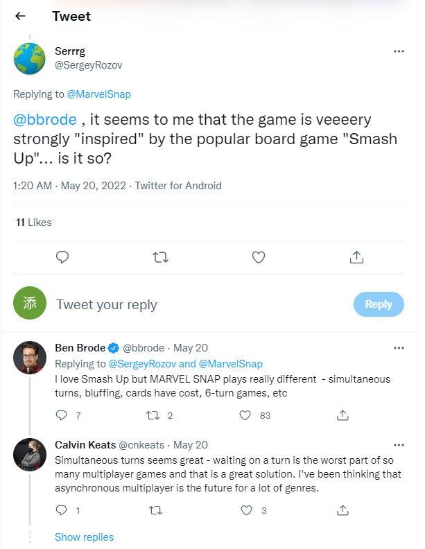 届时的玩家社群只知道BB在制作一个漫威IP的游戏,但不知道究竟是什么类型。以至于后来的各种漫威IP卡牌游戏都曾被误传为BB的作品:像是漫威对决(手游),漫威群英传(桌游)。