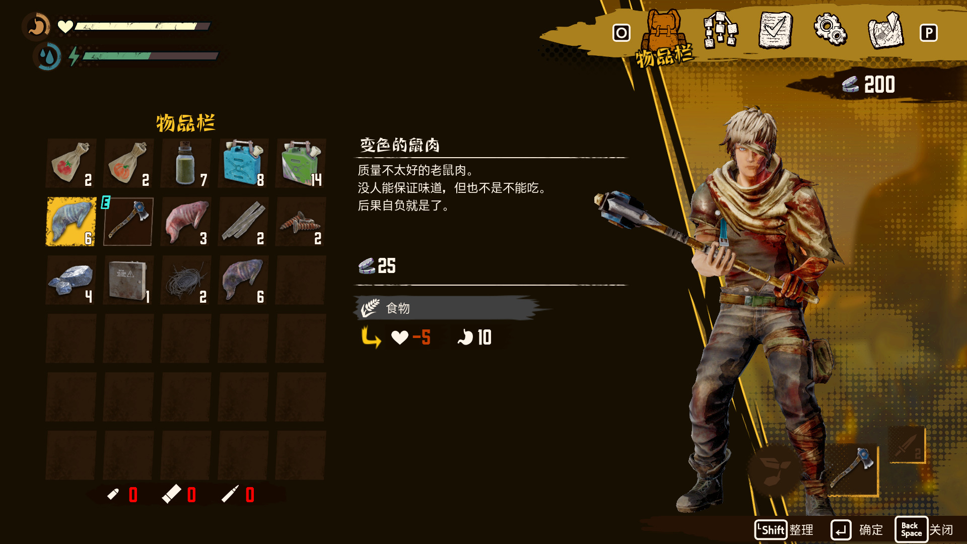 食物只能打开菜单才能吃,主角还会有对应的动作,吃变异的老鼠肉还会特别的痛苦。