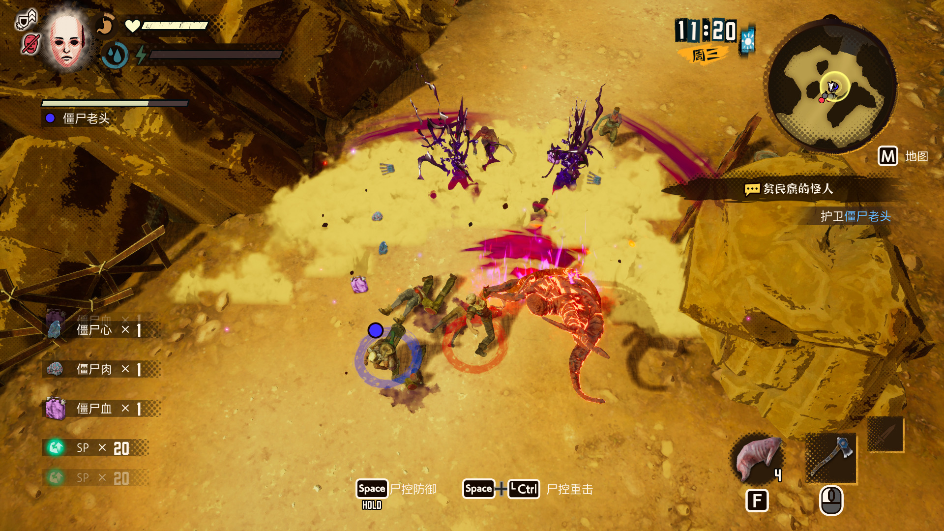 在老头的讲解下,我们终于得知自己作为混血僵尸的优点,就是可以使用僵尸攻击:挥动自己变异的左手进行大范围的横扫。