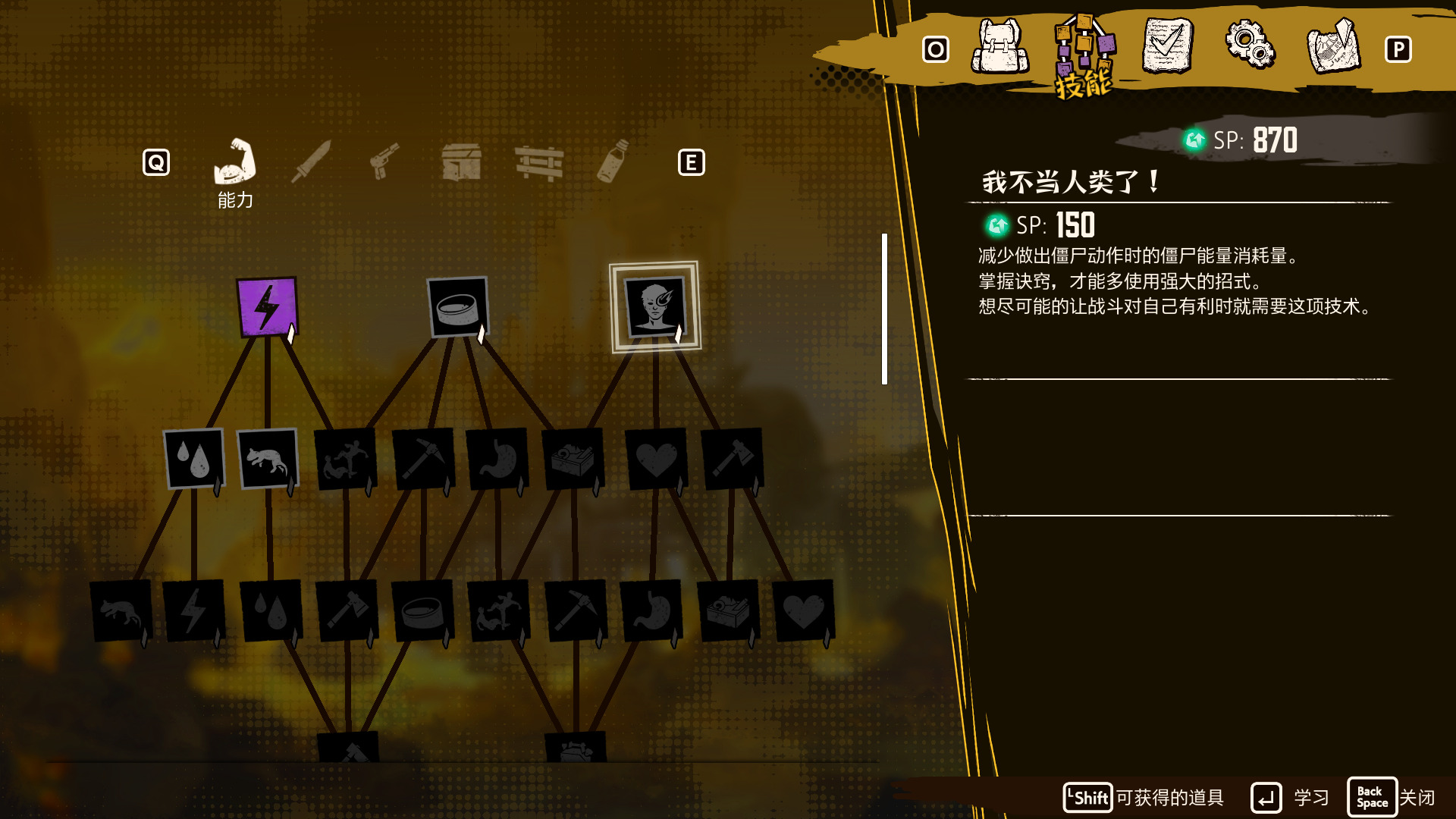 游戏中玩家解锁了僵尸科技之后,就可以学习各种技能,本土化翻译也做得相当好。