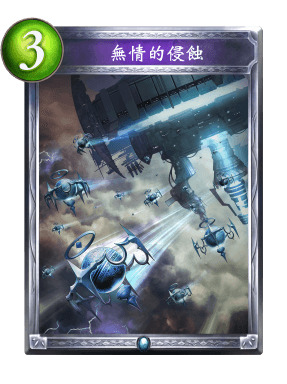 无情的侵蚀同时兼具铺场、解场效果,并能以仅三费完成先手两种后手三种的任务进度,在DLC前一度被称为鱼丸本卡包最大收获