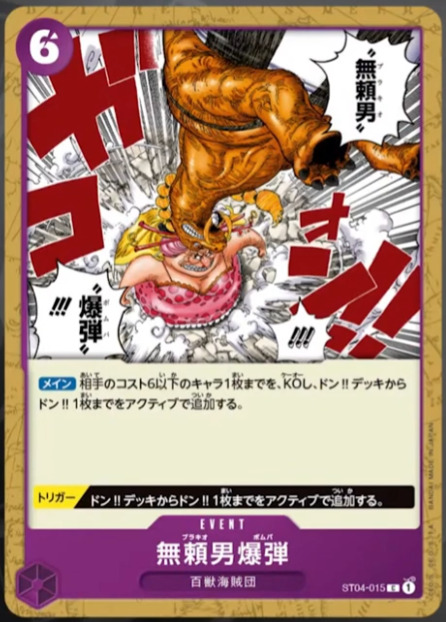 [登场时]咚!!-6:如果自己的英雄有《百兽海贼团》的特性,则将本角色以外的所有角色KO。