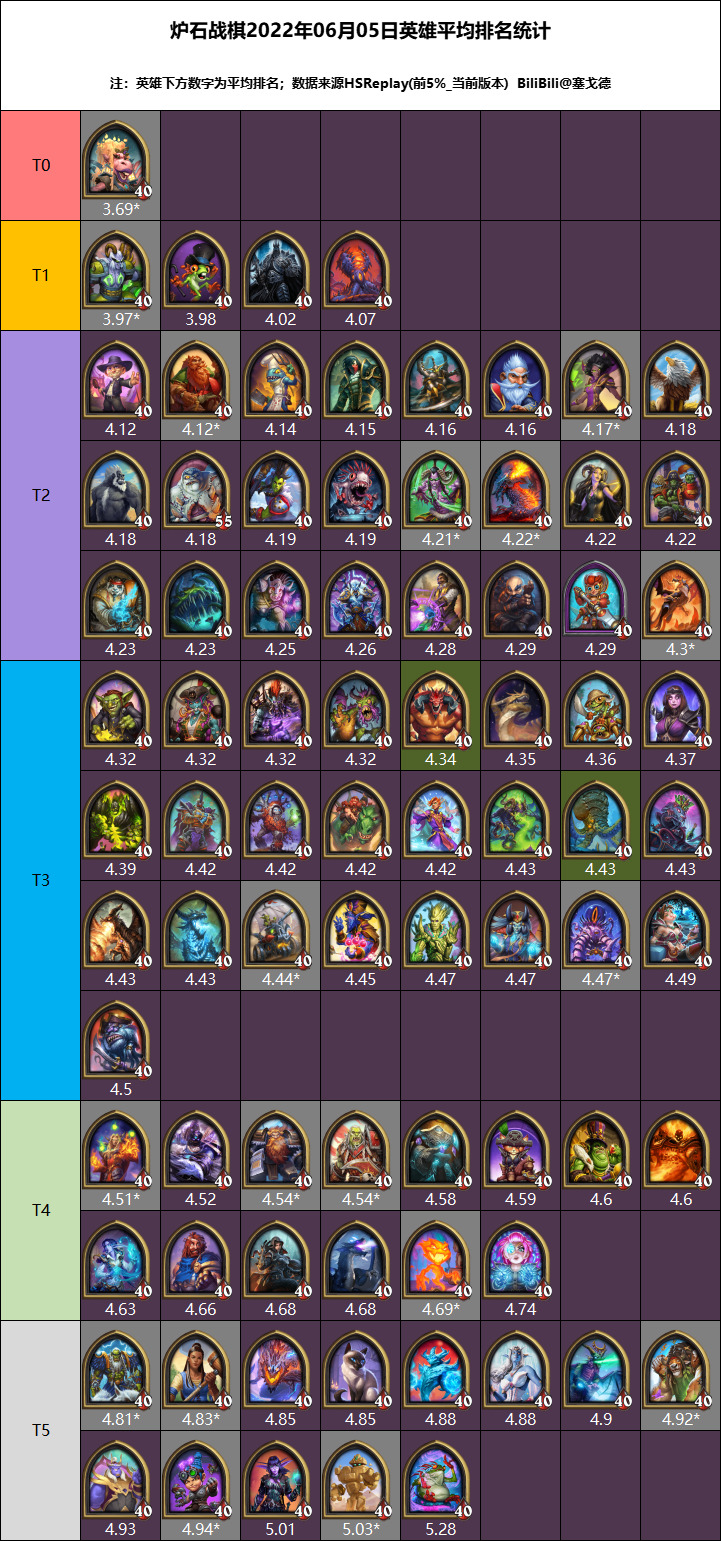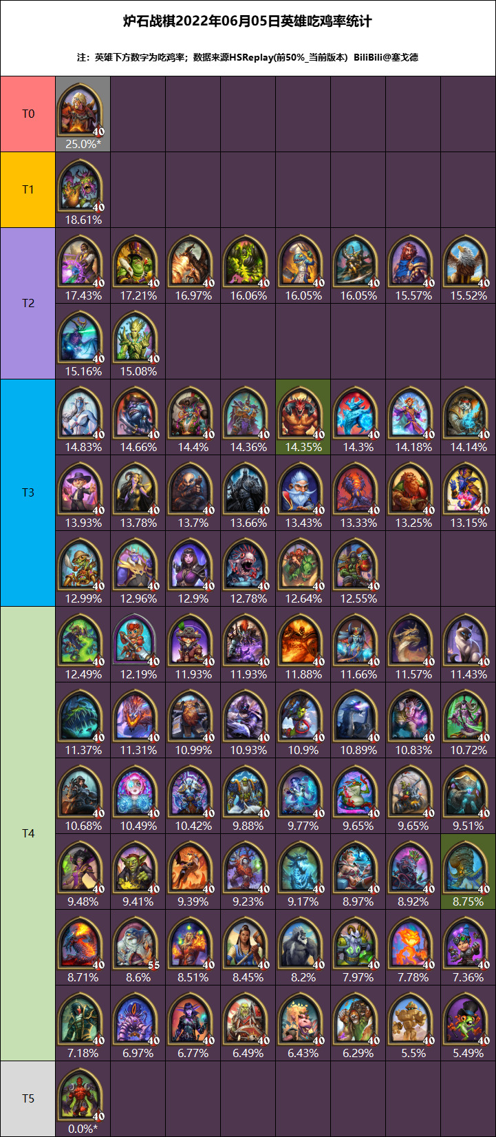 大家好,我是塞戈德,好久不见,主要上个月更新频繁,每每新版本三日数据要出了就来了个更新, 弄的不上不下的,那么废话不多说了,6月2日更新的2个英雄我已经用绿底标识了(男巴在上线1天后发现技能无法正确猜测其他玩家与菠萝回合的胜负暂时退环境,但是还有部分数据,标识为灰色),数据采用版本更新以来的3日数据。