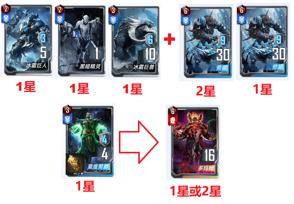 本卡组带了两张多玛姆,其实一张就够用了,带两张的原因是大身材的多玛姆上场以后会直接干掉对面的杂兵,而不用浪费我们的碰瓷伤害,集中伤害到对手身材最大的随从上,比如有一次打援军,我二星多玛姆入场以后,直接多玛姆一个人杀死了对面三四个卡,然后伤害基本都集中到对面的大伊卡身上了。