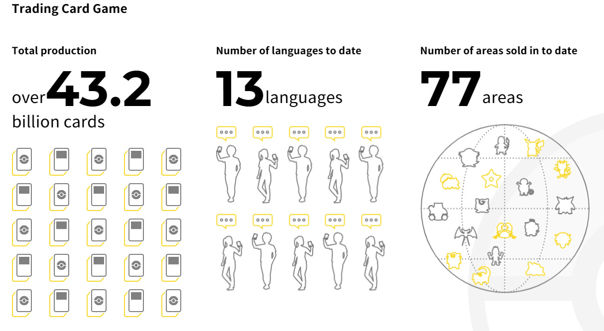 宝可梦公司近日宣布,截至到2022年3月,宝可梦相关游戏累计出货量突破4.4亿,比去年增加6000万,宝可梦TCG卡牌累计销量432亿张,相比去年增加92亿张。