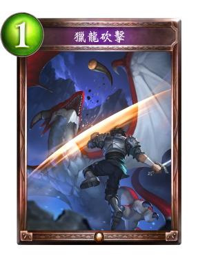 猎龙砍击可以打出很高直伤,特别是配合龙枪战士·罗文召唤的弑龙之枪的情况下。觉醒后的砍击还能过牌。在需要的情况下,砍击也可参与解场。
