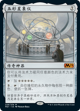 在这条路线里,我们可以牺牲第二个神器生物直接找出五彩星象仪,得到无限费无限抓牌。