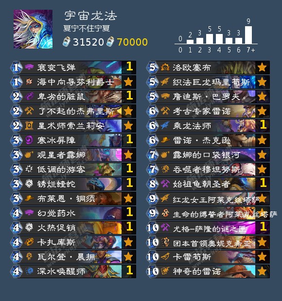 最后,笔者想说的是,作为一套宇宙卡组,宇宙法包罗万象,每一局都有不同的思路和打法,比较依赖熟练度和抉择,因为卡组整体强度不高,所以容错率低,有时一个小小的抉择,比如卡扎药水印错了,或者玛里苟斯法术拿错了,甚至姐夫是成长还是背刺这么一个小抉择会导致整局游戏的走势,