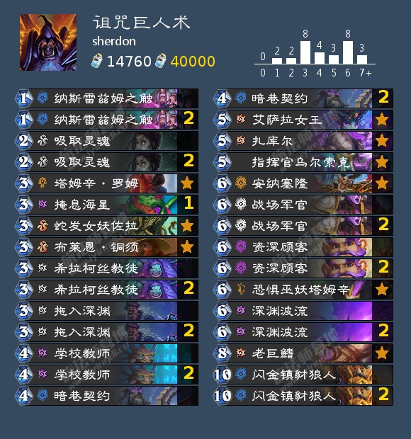 这还不成么?诅咒本就应该更契合进攻体系,铺场的同时洗诅咒,对面就要面临解场和扔诅咒的抉择,这样才能更大可能地让诅咒造成两次伤害。而且增加了天胡的可能,在劣势对局中能有一战之力。最明显的例子就是**天克术士,大数据1.5对8.5开的局,传统诅咒术只能祈祷对面卡手78费还没启动,不然基本上跑了,而我们有一手天胡巨人推死的可能(3费巨人4费巨人5费硬币风怒)。