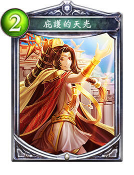 这套牌还投入了庇护的天光。它能为拳圣提供守护,使对手在无法解掉拳圣的情况下也无法有效打脸,在面对葬送死等有OTK能力的对手时十分有用,也是这套牌战胜超越法等天敌的仰仗之一。