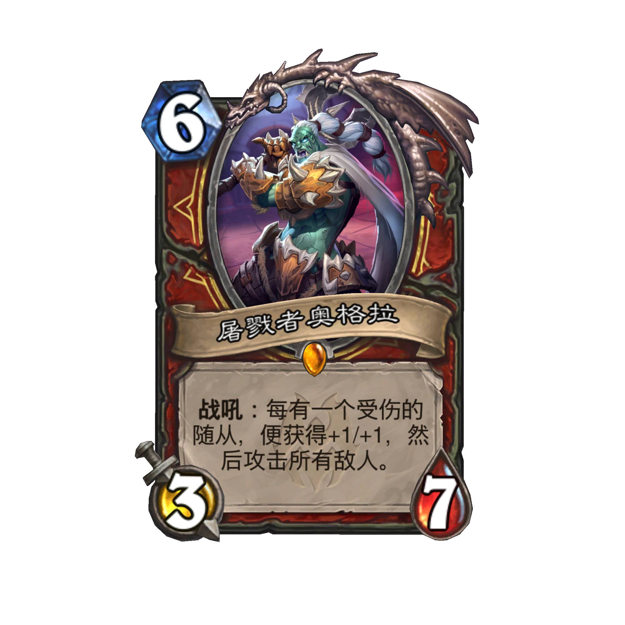 :每有一个受伤的随从,便获得+1/+1,然后攻击所有敌人。