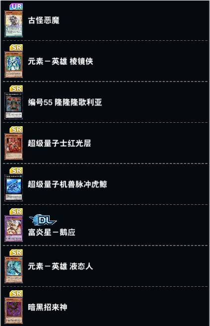 更新之后K社公布了第41主卡盒的内容。依旧和上次一样的公布方式,看着就难受。本次是为了配合接下来GX世界的活动,所以加强卡组以GX动画中出场的角色的卡为主。包含最新角色吉姆使用的化石系列,十代的-英雄系列,以及三幻魔。此外还有OCG系列超级量子和战吼。此外还有之前限时包的复刻卡。