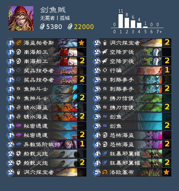 来自孤城的一套补丁之后的剑鱼贼,他用这套从1w名开外以61%的胜率打至前百。