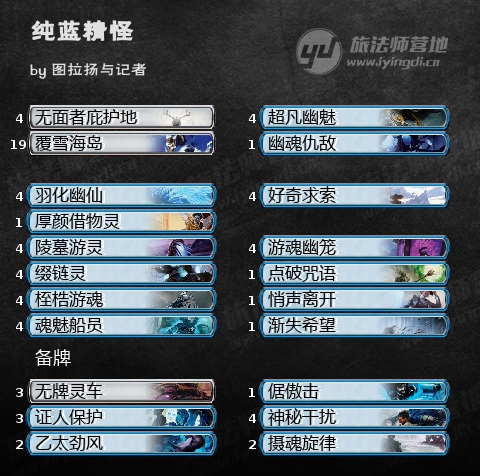 纯蓝精怪造价如此低廉的主要原因是地,比起其他套牌形形色色的双色地,这套牌只需要3-4张无面者庇护地、0-1张宵城大田原,其他的地都可以且只可以用覆雪海岛来填充。