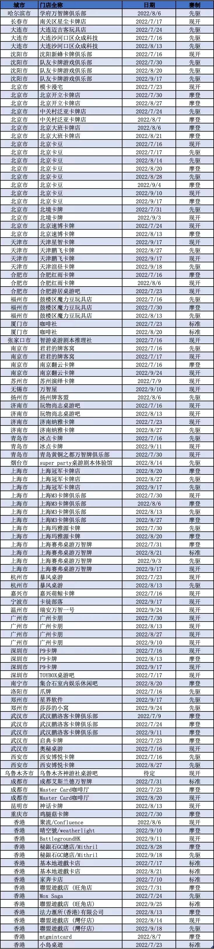 (受疫情带来的不确定性影响,以下比赛时间随时可能变动,以店家公告为准。详询当地牌店。)