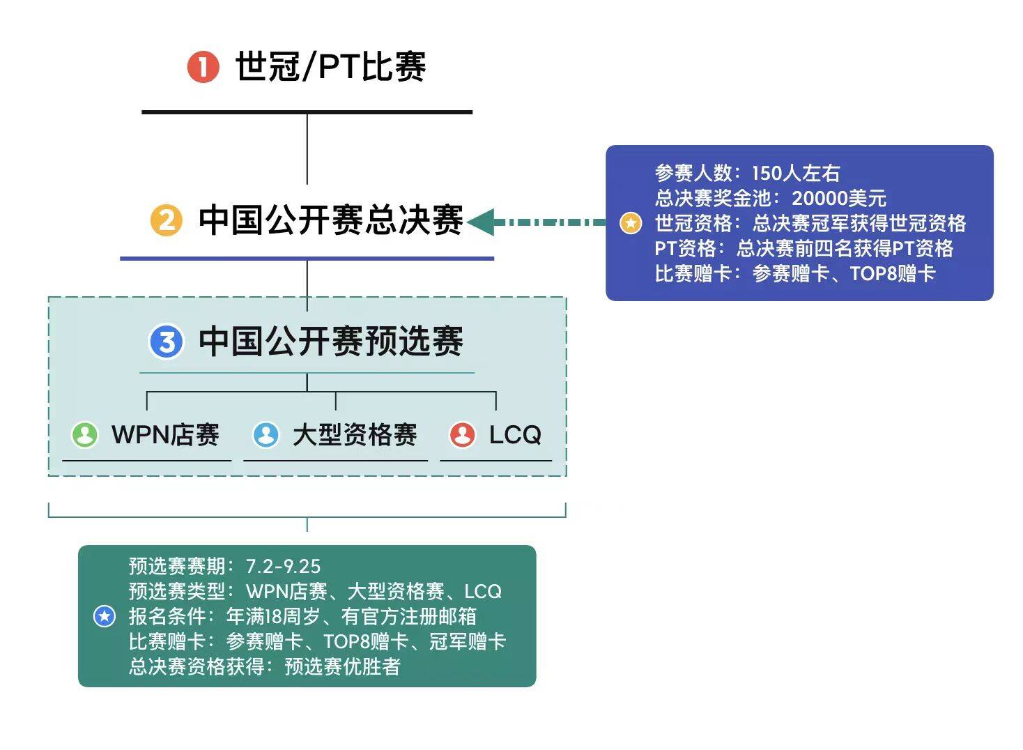 您可以参加从7.2-9.25之间举办的WPN预选赛,冠军即可获得总决赛资格。如果您没有从WPN预选赛获得资格,不用担心,总决赛之前还会有LCQ,那也是获得资格的好机会。
