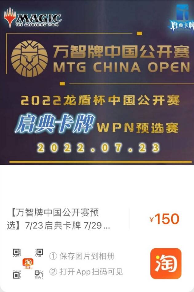 ● 参赛费用 150元/人(与7月23日的「启典卡牌」WPN预选赛一同报名,仅需支付260元即可同时报名2场赛事)