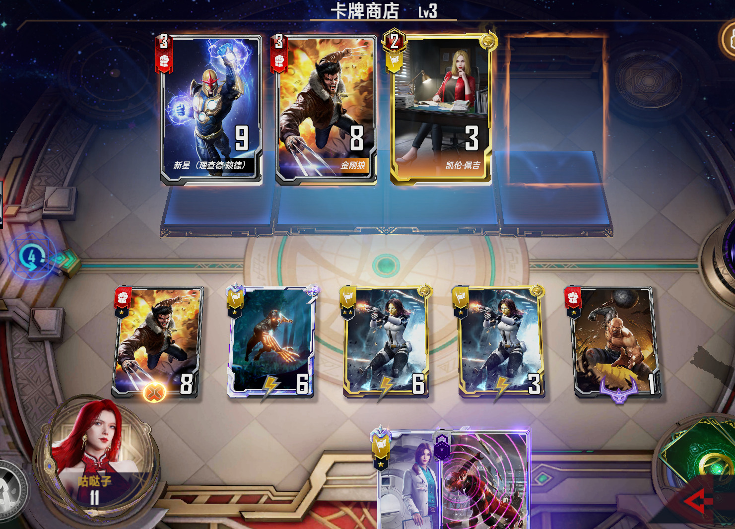 5费:教授×2~4,中期最多拿两个,快速检索X战警队友,以及主角终幕成型后疯狂白嫖商店。