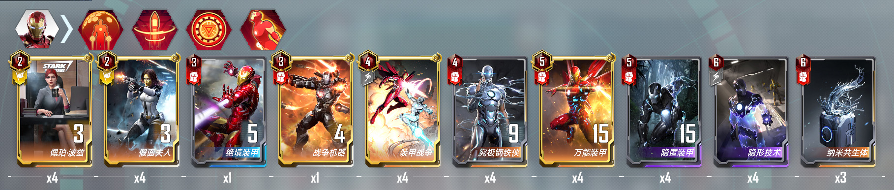 究极钢铁侠:2~4张,4张最佳,万能组件。