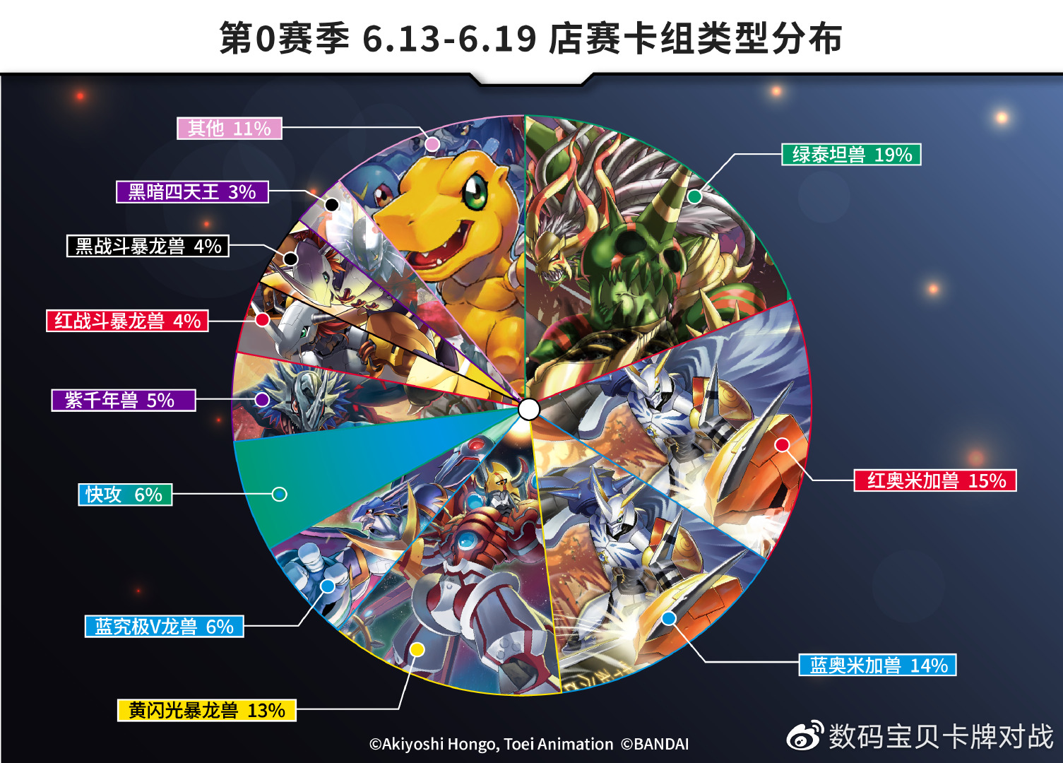 感谢各数码终端和驯兽师们为我们提供的数据及卡组照片!以下数据仅供各位参考!因收到的卡组照片可能会有模糊不清的状况,展示的卡组可能与实际构筑有所出入。对本次统计如有疑问和建议欢迎以转发/评论/私信等方式联系我们!