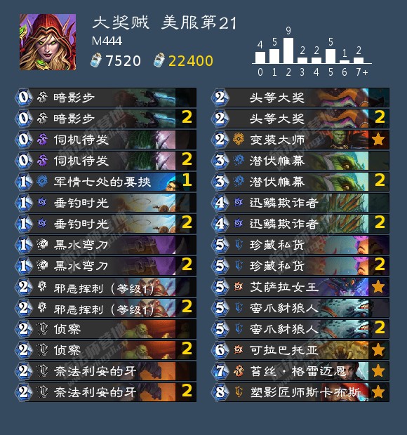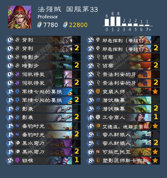 大奖贼一直以来都有一个值得讨论的问题,那就是自己带不带大 法术。对于这个问题,我个人的答案是否定的,因为盗贼的高费法术都不算很强,不配合伺机待发或者迅鳞欺诈者的话打出去血亏,而配合上的话高费法术本身倒是不亏,迅鳞欺诈者又血亏了…。