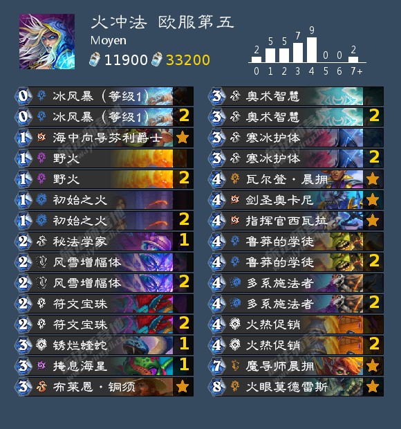 补丁后最主流的法师形态是龙火法,此外也有一些火冲法。纳迦法因为恶鞭海妖的削弱,整体节奏后移,很容易撞到大奖贼和龙火法的爆发回合,打水 雷贼、邪能瞎时也会出现回合不够的情况,而且本来容易撞雪落的情况也不可能缓解,目前看来前景不乐观。