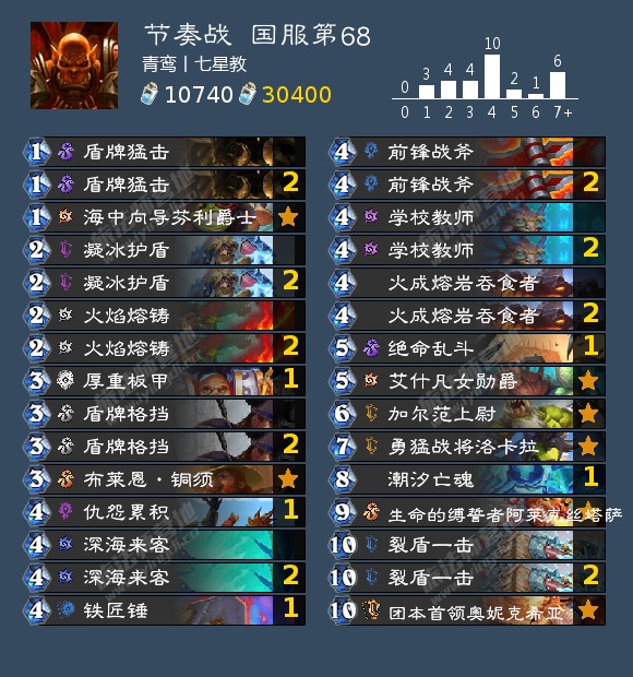 在大削之后,战士已经很难先手出场,目前在环境中的定位是抓**贼的若干卡组之一。从构筑上说,被削弱之后的深海来客似乎已经不值得携带,人们更倾向于腾出卡位来携带一些抗快卡。