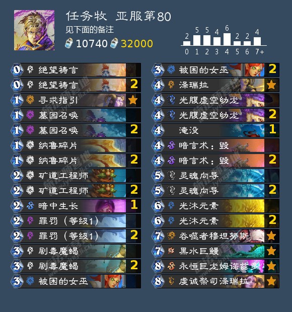 术士还是老样子(为了不让大家觉得每次到术士我都一句话都不说,我就说这么一句吧)……不过诅咒术打大奖贼效果其实还不错,如果分段中大奖贼特别多也可以拿出来。