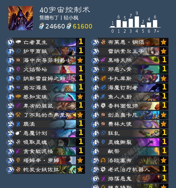 焦糖布丁丨轻小枫的一套宇宙控制术。我个人其实觉得术士是最适合王子的狂野职业,原因不少,但之后若能打出战绩,再和大家分享,否则我云玩家就误人子弟了。