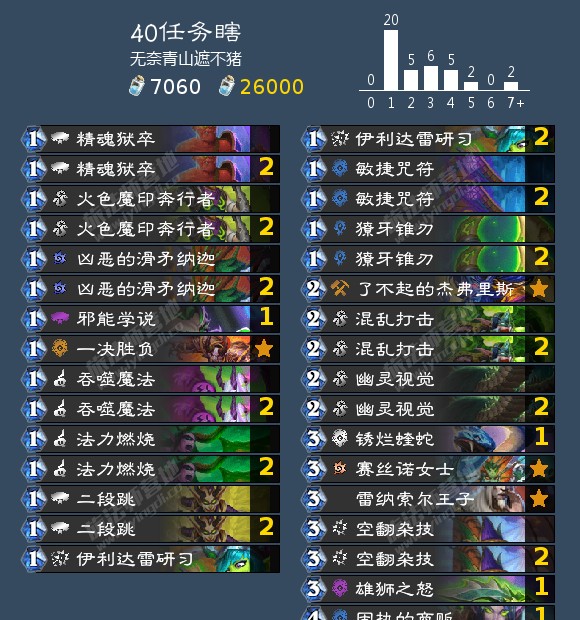 来自迷妹的一套40开门法,它使用这套卡组从100+打到了40,但可能场次不够,难辨与传统构筑相比之下的优劣,所以迷妹也只是保守地说没有很厉害。大家可以参考。