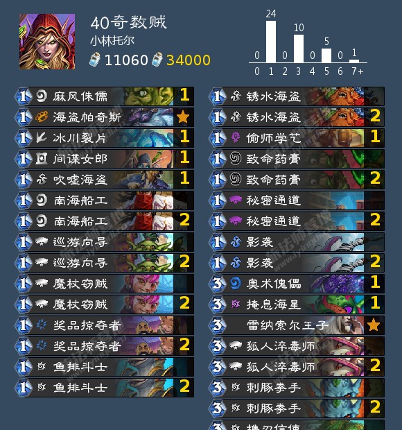 来自小林托尔的一套40血奇数贼,卡组比较抽象,但投稿人本身长期在月榜,实力比较扎实,所以我还是把这套奇怪的40快攻卡组分享给大家。
