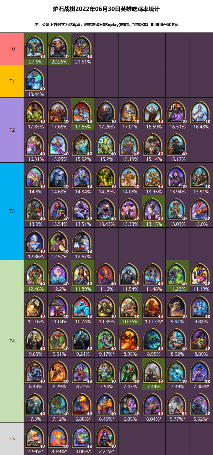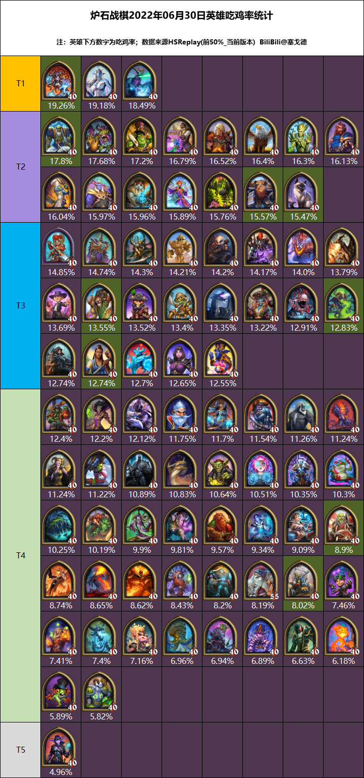 由于今天下班有点晚,写到这发现已经过了0点,赶紧把标题改成7月1日英雄大数据统计,我tm真是天才,本来还想再唠唠,明早还要上班,反正其他英雄和单卡在昨天的预测视频里都说了,包括现在暗月奖券的排名,大家有空可以看看,你们的点赞也是我继续做评测的动力