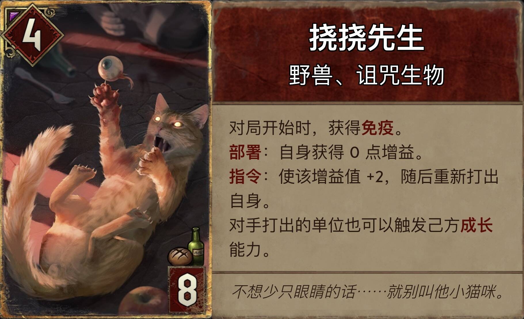 摸了鸡:我想很多人会说这张牌完爆了“孽鬼战士”,那么就透露一下新版本中“孽鬼战士”的重做。现在他很灵活,可以作为成长引擎,也可以用来触发成长。