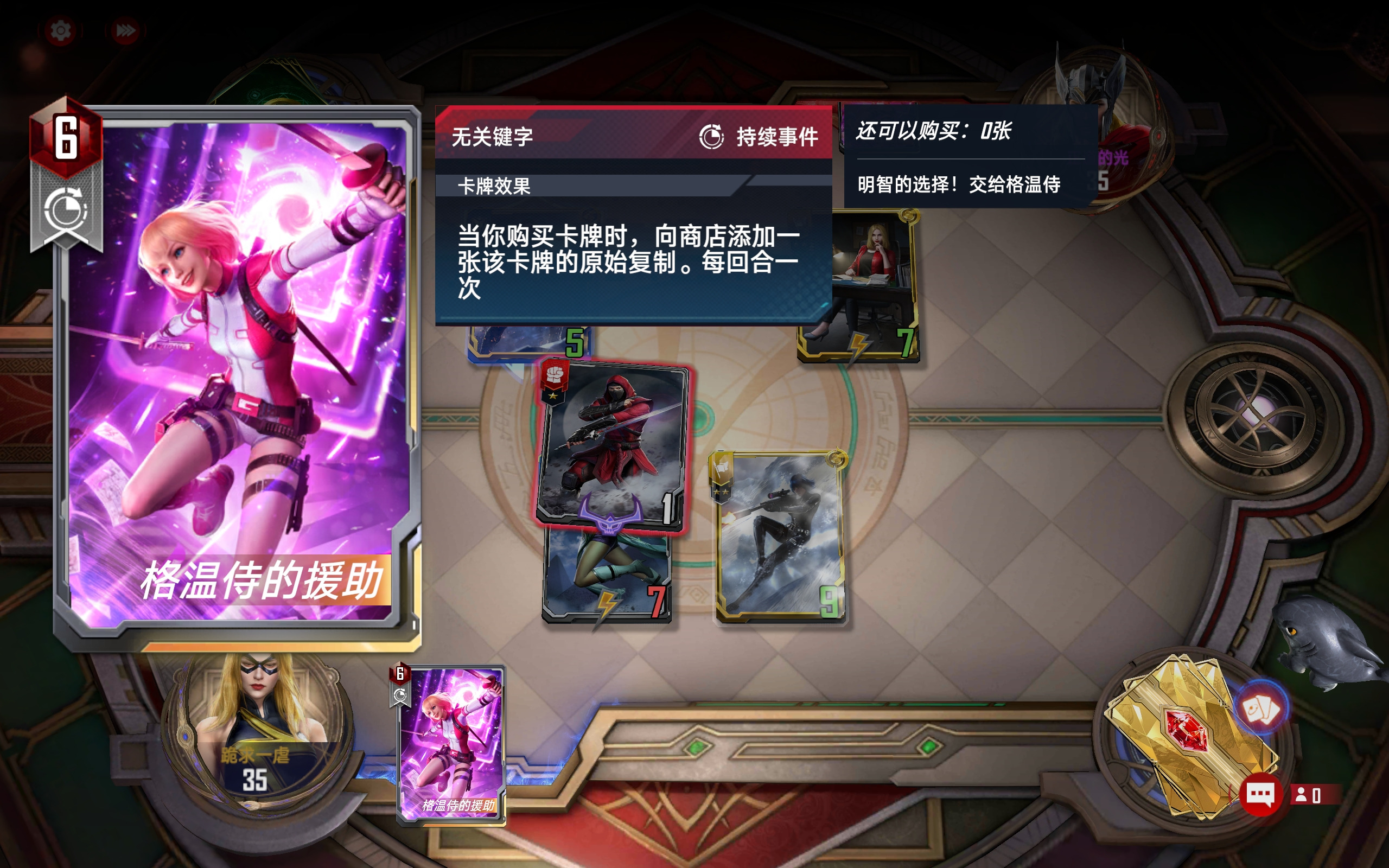 1、第一回合把格温事件放事件池以后,买攻击最高的随从复制后,再次买攻击最高的随从: