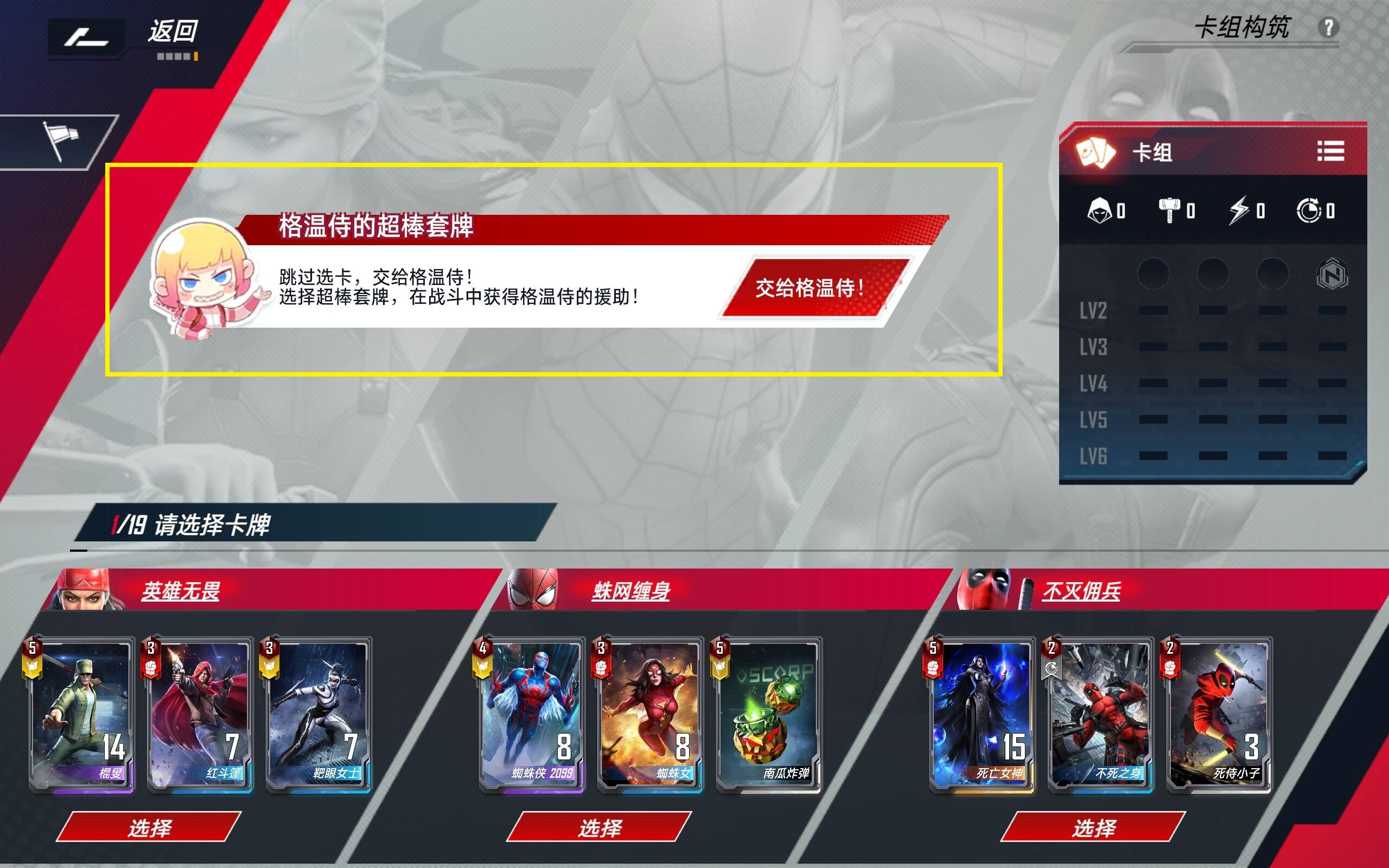 传统的竞技场选牌之前我有出过两期攻略,本文只讲下这个有趣的“格温侍的超棒套牌”的玩法。进入竞技场以后选择“交给格温侍”,他会自动填满卡组。