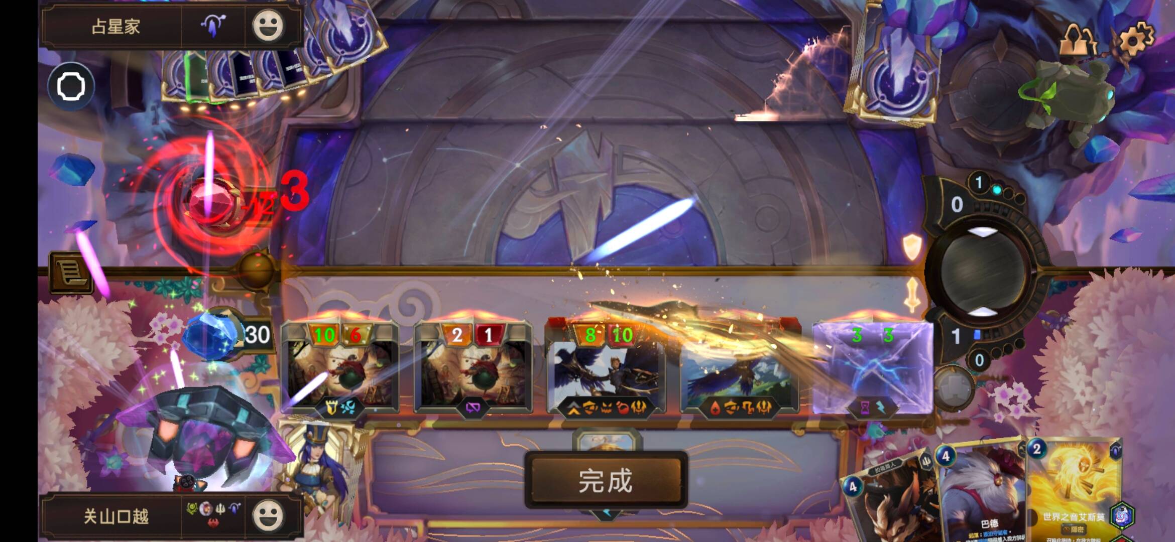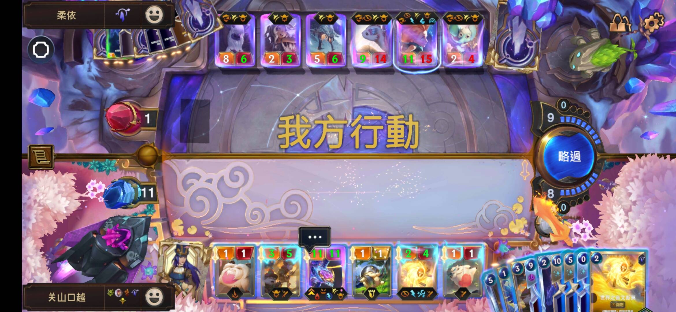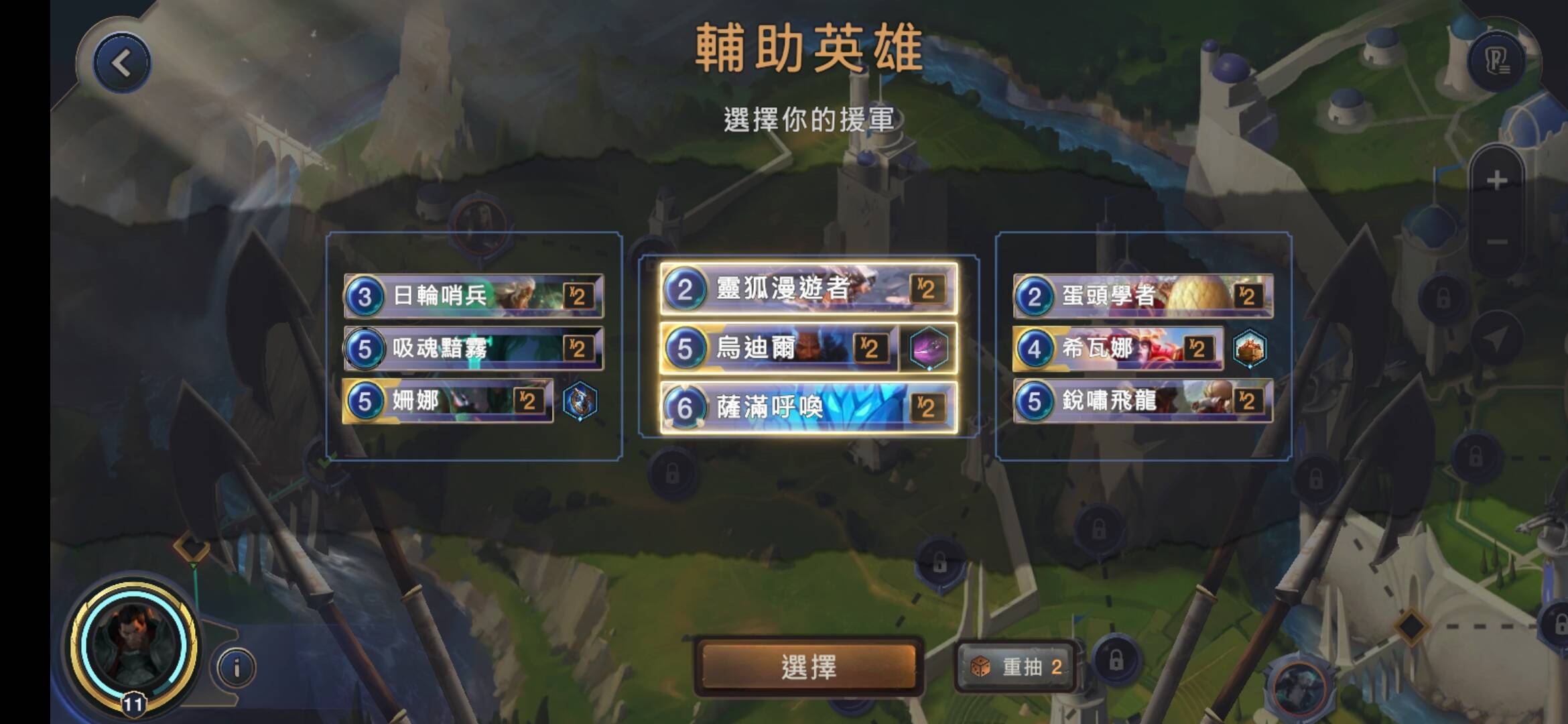 另一把则没有这么幸运,开场天赋三个辣鸡中无奈选择了每回合一个11魄罗,第一关极容易被无畏先锋平推,必须靠养隐秘大哥或者355碾压抢死才能保证自身状态。英雄选择上,因为魄罗吃格子,加上其辅助苟活特性,我在龙王/复制猪妹/偷牌赏金中选择了带着每回合减一费的龙王,除却其他两个选项意义不明的因素外,巴德的身材buff可以有效地帮助龙王升级,龙王开场拿到也可以6费下场升级,缺点就是硬解的缺乏,过佐伊有翻车的风险,而且要打很长时间。但过了佐伊之后,龙王的巨大资源优势和续航能力足以让我们和BOSS互耗,核心355自带咒盾加上被动天赋并不难过佛爷,即便打加里奥时,加里奥出场也能不弱下风。