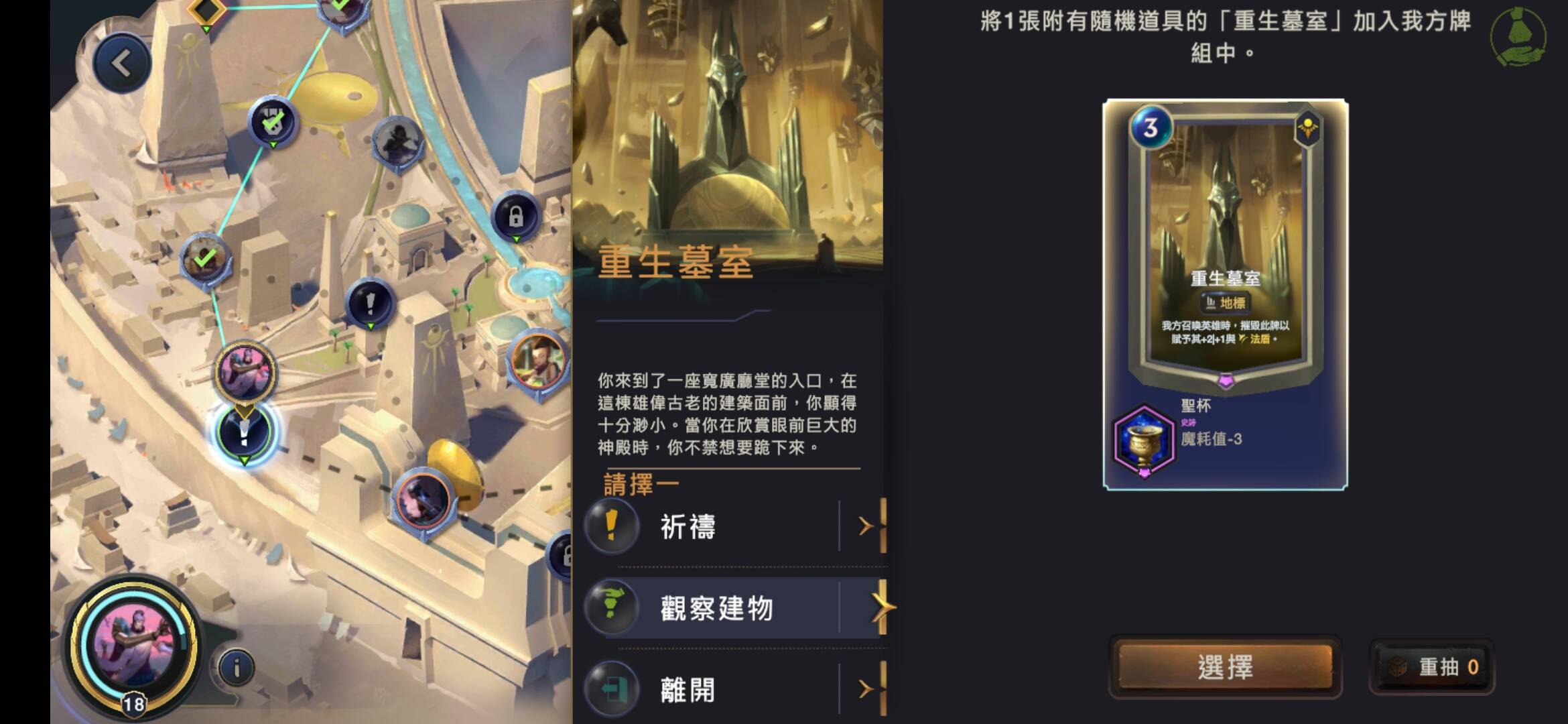补充一下新版本恕瑞玛关卡几个事件:重生墓室可以给一个英雄咒盾或是获得一个结附道具的重生墓室,不是每次都能运气好拿到0费,所以不是特别需要稳定咒盾的不建议去。