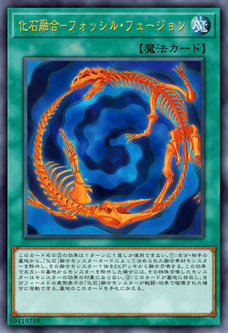 ②:这张卡在墓地存在,自己场上的表侧表示的「 化石 」融合怪兽被战斗·效果破坏的场合才能发动。墓地的这张卡加入手卡。