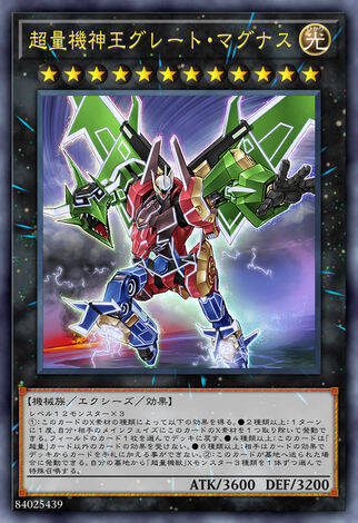 ①:得到这张卡的超量素材种类的以下效果。●2种类以上:1回合1次,自己·对方的主要阶段把这张卡1个超量素材取除才能发动。选场上1张卡回到卡组。●4种类以上:这张卡不受「 超级量子」卡以外的卡的效果影响。●6种类以上:对方不能用卡的效果从卡组把卡加入手卡。②:这张卡被送去墓地的场合才能发动。从自己墓地选「 超量机兽 」超量怪兽3种类各1只特殊召唤。