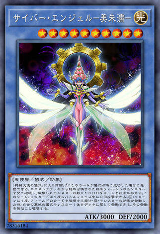 效果:「机械天使的仪式」降临。①:这张卡仪式召唤成功的场合才能发动。从额外卡组特殊召唤的对方场上的怪兽全部破坏,给与对方破坏的怪兽数量×1000伤害。这个回合,这张卡在同1次的战斗阶段中可以作2次攻击。②:1回合1次,要让场上的卡破坏的魔法·陷阱·怪兽的效果发动时,让自己墓地1只仪式怪兽回到卡组才能发动。那个发动无效并破坏 。