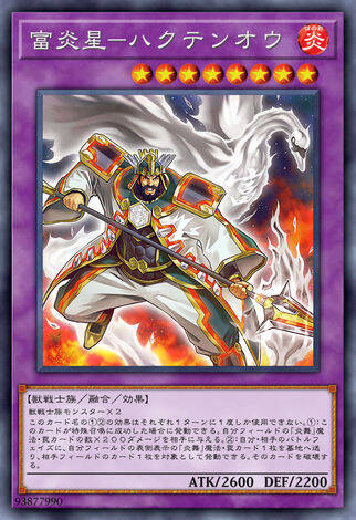 这个卡名的卡在1回合只能发动1张,这个卡名的②的效果1回合只能使用1次。 ①:作为这张卡的发动时的效果处理,以下效果可以适用。●从自己的手卡·场上把兽战士族融合怪兽卡决定的融合素材怪兽送去墓地,把那1只融合怪兽从额外卡组融合召唤。 ②:魔法与陷阱区域的表侧表示的这张卡被送去墓地的场合,以自己墓地1只「炎星」怪兽为对象才能发动。那只怪兽加入手卡。
