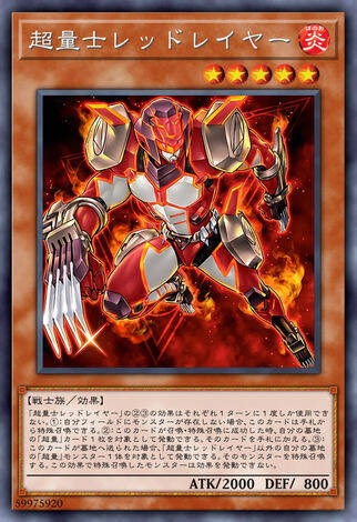 ①:没有超量素材的这张卡不能攻击。 ②:1回合1次,把这张卡1个超量素材取除,以场上1只怪兽为对象才能发动。那张卡破坏。这张卡有「超量士 红层」在作为超量素材的场合,这个效果在对方回合也能发动。 ③:1回合1次,自己主要阶段才能发动。选自己的手卡·场上1只「超级量子战士」怪兽在这张卡下面重叠作为超量素材。
